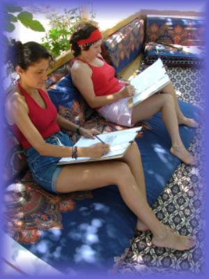 Aydın Çukurova. Mesela kahvaltı yaklaşık 1.5 saat sürüyormuş. Komşuları Pembe teyze’den alıyorlarmış tereyağını, peyniri, eti, sütü filan. Pembe nine sanat kampının komşusu. Yaşı 69. Kampa ziyarete geldiğinde eli boş gelmedi, bir tabak dolusu badem getirip masaya bıraktı. “Günlerin nasıl geçiyor neyle geçiniyorsun Pembe nene” diye sordum aldığım cevap şöyle oldu: “Birkaç tane davar, koyun, tavuk filan var. Bir de inek. Onlarla geçiniyom. Sabah erken kalkmak lazım. Yaşlandım artık bu sabah kalkamadım 2’de 3’de veya 4’de kalkıyorum. Ne zaman kendime gelirsem hemen kalkıyom. Bubam 110 yaşında öldü, ona bakacağım diye ben hiç evlenmedim. Kardeşim var o bakıyor ilgileniyor benimle.” Kampın o günkü konuklarından Banu Gürel iç mimar, Sibel Çakan ise tıp doktoru. İki arkadaş İstanbul’dan gelmişler. Banu Gürel anlattı; “Treking yaptık. Denize gittik, sohbetlerimiz çok güzeldi. Antik şehirleri gezdik. Bir hafta geldik ama yetmedi. Seneye tekrar geleceğiz.” Kampın özel yemekleri arasında sadece sütlü menemen ve sebzeli makarna var. Diğer yemekler standart köfte, fasulye filan filan... -MODA EBSRU SANATI- Her gelen mutlaka bir ebru sanatına bulaşıyor. Masanın başına toplandık Pembe Nene dahil herkes. Aydın Çukurova bilgi verirken, konuklar ellerine fırçaları alıp tuali karalıyorlardı. Pembe nene, “Boş bunların yaptığı boş. Alan var mı bunları allah aşkına” deyince hepimizi aldı biraz gülmek. Kampın bahçelerini duvarlarını resimler, fotoğraflar, heykeller süslüyor. Bahçede Hollandalı bayan seramik heykel sanatçısı Valentina Van Herper’in eserleri ilgi çeken bir köşe. Evin odalarını ise başta Aydın Çukurova’nın ve burada çeşitli sanatçıların yaptığı eserler süslüyor.