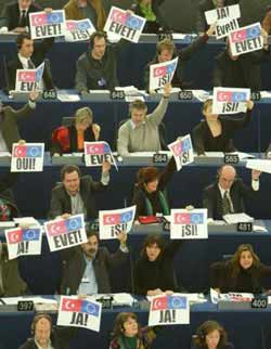 AP, AB’nin Türkiye ile tam üyelik müzakerelerini gecikmeden başlatmasını tavsiye eden karar tasarısını 262’ye karşı 407 oyla kabul etti.