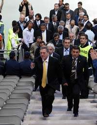 Tribünlerde bulunan özel güvenlik birimlerinden bazıları yöneticilerin yerleştiği bölümün çevresine oturdular.
