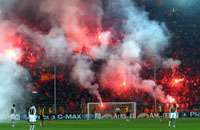 Galatasaray kafilesinin stada girişi sırasında Türk taraftarlar ’’Welcome to Galatasaray’’ ve ’’Aslanlar yalnız değilsiniz’’ yazılı pankartlar açarak, Galatasaray’a sevgi gösterilerinde