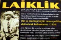 Bir başka afişte ise Atatürk’ün ’Din ve mezhep hiçbir zaman politika aleti olarak kullanılamaz’ sözleriyle başlayan konuşmasına yer veriliyor. Kaynak: Radikal gazetesi