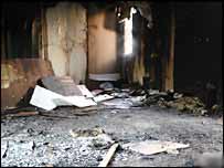 Yangın sonucu cami ağır hasar gördü.