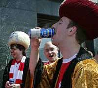 Bu akşam Şampiyonlar Ligi Finalinde İtalyan Milan takımıyla karşılaşacak olan İngiliz Liverpool takımı taraftarları, Avrupa yakasındaki dükkanlarda bira bırakmadı.