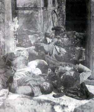 Deresinde çekilmiş. Bu fotoğrafta, Hono ismindeki Ermeninin başında bulunduğu çete tarafından hançer ve kurşunla şehit edilen erkek, kadın ve çocuklar görülüyor.