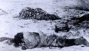 10. fotoğrafta ise, Erzincanın Odabaşı bölgesinde birbirlerine bağlanmış halde öldürülmüş kadın ve çocukların cansız bedenleri görülüyor.