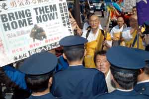 3 Japon vatandaşın esir alınmasını "hoşgörülemez" şeklinde niteleyen eylemciler, hükümetin Irak’taki Japon askerlerine ilişkin kararından vazgeçmemesi halinde, gösterilerin artarak devam edeceği uyarısında bulundu.