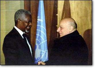 BM Genel Sekreteri Kofi Annan'ın bugün New York'ta Kıbrıs saatiyle 23.00'de KKTC Cumhurbaşkanı Denktaş ve Rum Yönetimi Başkanı Tasos Papadopulos'la bir araya geleceği bildirildi. Dün bir Rum televizyonuna demeç veren BM Genel Sekreteri Kofi Annan, tarafların uzlaşmaya yanaşmaması halinde çabalarına son vereceğini açıkladı.