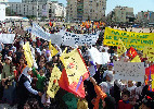 Bu arada, kadınların yürüyüşü sırasında bir apartmanın balkonunda Türk Bayrağı açıldı. Yaklaşık 3 bin kişinin katıldığı miting, daha sonra miting alanında yapılan konuşmalar ve müzik eşliğindeki oyunlarla son buldu.