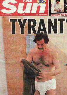 The Sun gazetesinin bugün yayımladığı fotoğraflarda, Saddam Hüseyin iç çamaşırlarıyla görülüyordu. Gazete, fotoğrafları ABD askeri kaynaklarından elde ettiğini bildirmişti.