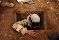 Irak’ın devrik lideri Saddam Hüseyin’in Tıkrit yakınlarındaki Eldor Kasabası’nda El Hadra bahçesi olarak bilinen yerde saklanırken yakalandığı mahsen, basın mensuplarına gösterildi.