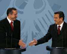 Schröder, Başbakan Erdoğan ile görüşmesinden sonra düzenlenen ortak basın toplantısında, ülkesinin Aralık ayında Türkiye ile üyelik müzakerelerinin başlatılması konusunda olumlu oy vereceğini bildirdi.