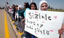 Çarşı içinde toplanan Suriyeliler, Sezere yoğun sevgi gösterilerinde bulundular, alkışlarla, Arapça, Hoş geldiniz diyerek, tezahürat yaptılar.