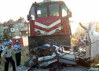İzmir-Denizli hattında çalışan 31703 sefer sayılı yolcu treni, Bayındırlık Kavşağı’ndaki hemzemin geçitte, sürücüsünün kimliği henüz belirlenemeyen 09 VE 136 plakalı minibüse çarptı.