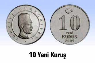 10 Kuruş’un çapı 19.25 mm, kalınlığı 1.70 mm, ağırlığı 3,850 gr. Kenarı düz olan 10 Kuruş’un ön yüzünde ayyıldız, tedavül değeri, baskı yılı olan 2005, arka yüzünde, çevresinde, "Türkiye Cumhuriyeti" yazısı, ortada daire içinde kalpaklı Atatürk rölyefi yer alıyor.