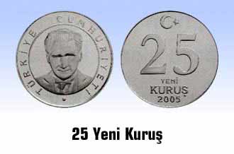 25 Kuruş’un çapı 21.50 mm, kalınlığı 1.90 mm, ağırlığı 5,300 gr. Kenarı tırtıllı olan 25 Kuruş’un ön yüzünde ayyıldız, tedavül değeri, baskı yılı olan 2005, arka yüzünde, çevresinde "Türkiye Cumhuriyeti" yazısı, ortada daire içinde Atatürk’ün ön cephe profil rölyefi bulunuyor.