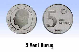 5 YTL’nin arka yüzünde Anıtkabir görüntüsü yer alıyor. Ön yüzünde Merkez Bankası Başkanı Serdengeçti ile Merkez Bankası Başkan Yardımcısı Binay’ın imzaları bulunuyor. Boyutları 76x162 mm olan banknotların hakim rengi yeşilimsi ve kahverengi olarak saptandı.