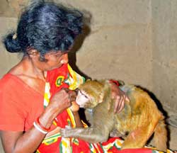 Hintli bir kadın şu sıralar Hindistanın en çok ilgi gören kişilerinden biri olmayı başardı. 46 yaşındaki Namatia Ghosh, 5 yaşındaki maymunu Bablooyu evinde besliyor ama tek farkla. Maymuna çocuğuymuş gibi meme veren Ghosh, görenleri hayrete düşürüyor.