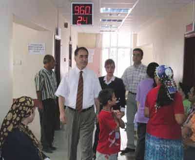 Hastane Başhekimi Mehmet Yağcı, günde 2 bini aşkın poliklinik hizmeti verilen hastanede yeni uygulamadan vatandaşların ve sağlık personelinin memnun olduğunu söyledi. Uzman Dr. Mehmet Yağcı, 24 ayrı polikliniğe de numaratör sisteminin kurulduğunu ifade ederek, "Artık hangi poliklinikte kaç kişinin sıra aldığını ve hangi numaranın muayene edildiğini takip edebiliyorum" dedi. Yağcı, "Devlet Hastanesi'ne günde ortalama bin 500 hasta muayene olmak için başvuruyordu. Yılbaşından sonra SSK'lıların da hastanemizden yararlanmaya başlamasıyla birlikte polikliniklerimize başvuranların sayısı günlük 2 bini aştı. Bu sayı bazı günler 2 bin 500'e kadar ulaşıyor. Polikliniklerimizde muayene olabilmek için sıra bekleme sırasında kavgalar çıkabiliyordu. Bundan hem sağlık görevlilerimiz hem de hastalarımız rahatsız oluyordu. Biz de çözüm arayışına girdik. Bankalarda yıllardır uygulanan numaratör sistemini hastanemizde de uygulamaya koyduk. Bu sistemin uygulanmasında İş Bankası'ndan büyük destek gördük. Artık hastalarımız geliyor, butondan numara alıyor ve muayene olmak için aldıkları sırayı bekleyerek muayene olabiliyor. Bu sayede tartışmalar da kavgalar da bitti" diye konuştu. Devlet Hastanesi'nin tüm servislerinde uygulamaya konulan numaratör sisteminden muayene için gelen vatandaşlar da memnun olduklarını ifade etti. Polikliniklerde artık muayene olmak için sıra kavgası ve tartışmalarının da bittiğini ifade eden doktorlar ise, "Artık işimize bakıyoruz. Daha önce sıra tartışmaları çalışmalarımızı engelliyordu. Artık herkes sırasını biliyor ve geliyor muayenelerini olup gidiyorlar" şeklinde konuştular.