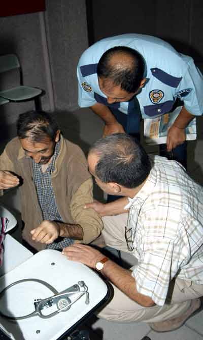 Eşi Hinayet Dağdeviren (42) ile birlikte önce hastane, sonra noter ve son olarak da adliyeye gönderilen Dağdeviren, tempoya dayanamayarak yorgun düştü. Eşinin yardım istemek için yanından ayrıldığı esnada koridorda fenalaşarak yere yığılan hasta adam, yanına gelenlere derdini bir türlü anlatamadı.
