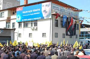 Polisin sıkı güvenlik tedbiri altında AK Parti İl binasına gelen memurlar burada, "Topla parayı, al havayı", "IMF defol bu memleket bizim", "Gün gelecek, devran dönecek, AK Parti hesap verecek", "IMFnin imamı kaça sattın vatanı", "Tayyipi alana Unakıtan bedava", "Onurlu memur hesap soruyor" şeklinde sloganlar attılar.