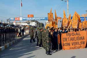 Adana, Mersin ve Hatay’dan otobüslerle gelen yaklaşık 80 kişilik grup, pankartlar ve sloganlar eşliğinde Türk-Amerikan Üs Komutanlığı’nın bulunduğu İncirlik Beldesi’ne girmek isteyince karşılarında güvenlik güçlerini buldu. Basın açıklamasını İncirlik girişinde yapmak istediklerini söyleyen grup temsilcisi Sevil Ulaş ile jandarma komutanı arasında ’izin’ pazarlığı yaşandı. Tartışmalı geçen konuşmalar sonunda grup davul eşliğinde yürüyerek geldiği İncirlik Kasabası önünde "Katil ABD Ortadoğu’dan defol", "İşgale değil direnişe destek" ve "ABD askeri olmayacağız" gibi sloganlar attı. Bu arada Jandarma robocoplar göstericileri çemberi içerisine alarak belde içerisine girmelerine izin vermedi.