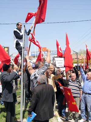 İşçi Partisi (İP) ABD ve hükümete tepki için İncirlik Beldesine Türk bayrağı dikti.