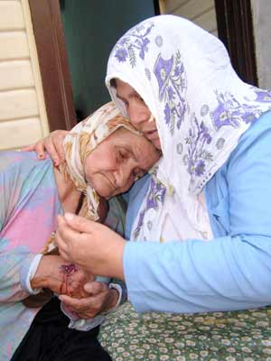 Kapkaççıların saldırısına uğrayarak parasını çaldıran ve elinden yaralanan yaşlı kadın gözyaşlarına boğuldu. Olayı öğrenen komşuları da yaşlı kadının yanına gelerek teselli etmeye çalıştı.