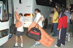 Bunun üzerine kulüp yetkilileri akşam vakti apar topar bir başka firmayı arayarak otobüs istedi. Futbolcular, "hurda" denilen otobüsten inerek bu kez 2003 model Mitsubishi otobüse yerleşti.