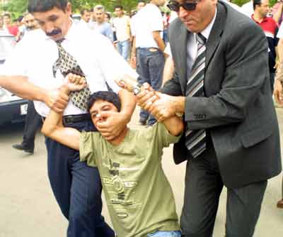 Burada öğretim üyeleri tarafından karşılanan Cumhurbaşkanı Sezer, polis kordonu arkasında bekleyen öğrenciler tarafından alkışlandı. Cumhurbaşkanı Sezer de, öğrencilerin ilgisine karşılık vermek üzere yanlarına giderek selamladı. Cumhurbaşkanı Sezer, amfiye girerken, dışardaki kalabalık arasına sızan 1 kişi, kırmızı bez açıp "Özgürlük istiyoruz, Adalet istiyoruz" diye bağırdı. Protestocu öğrenci, polis tarafından susturularak yaka paça gözaltına alındı