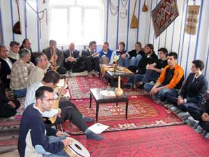 Turistlere, Danışma Kültür ve Sanat Evinde mahalli sanatçıların seslendirdiği yöresel müziklerin eşliğinde çiğköfte ve Adana kebabı ikram edildi.