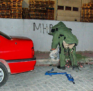 Olay yerine çağırılan bomba imha ekipleri ise, ekipmanlarını giyerek paketi robot ile uzaktan patlattı. Patlatılan paketten, bir içecek firmasına ait çok sayıda cam şişe çıktı.