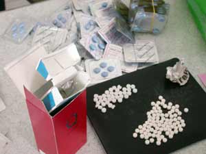 Gözaltına alınan şahısların ev, iş yeri ve araçlarında yapılan aramada 132 adet kaçak viski, 435 adet uyarıcı hap ile 150 adet extacy hap ele geçirdi.