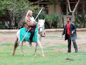 Adanada, Donkişot kıyafeti giyip eline mızrak ve kalkan alan bir kişi, atıyla geldiği İncirlikte tek kişilik eylem yaptı.