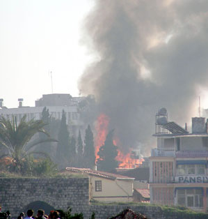Antalya Kaleiçi'nde bulunan ahşap pansiyonda çıkan yangın itfaiye ekiplerinin yoğun çalışmaları sonucu kontrol altına alınırken, soğutma çalışmaları da tamamlandı. Tamamen yanan 4 ahşap bina arasında 1 milyon dolar harcanarak restore edilen Urartu Halıcılık da bulunuyor.