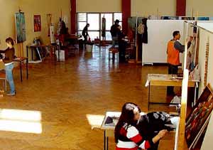 Akdeniz Üniversitesi Güzel Sanatlar Fakültesi Resim Bölümü öğrencileri, derslik bulamadıkları için çalışmalarını spor salonunda yaptıklarını belirttiler.