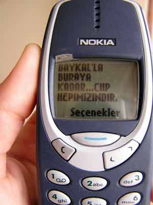 Antalya’da yaklaşık 700 Turkcell ve Telsim abonesinin cep telefonlarına saat 11.00 sıralarında ’Baykal ile buraya kadar... CHP hepimizindir’ ifadelerinin yer aldığı bir mesaj gelirken; CHP Anadolu Hareketi Antalya Temsilcisi Nuri Özkul, "Mesaj gönderdiğimiz herkesin en az bir kişiye bu mesajı iletmesini istiyoruz" dedi.