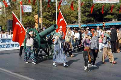 Tören, öğrencilerin, askeri birliklerin ve kamu kurum ve kuruş ile oda ve dernek temsilcilerinin