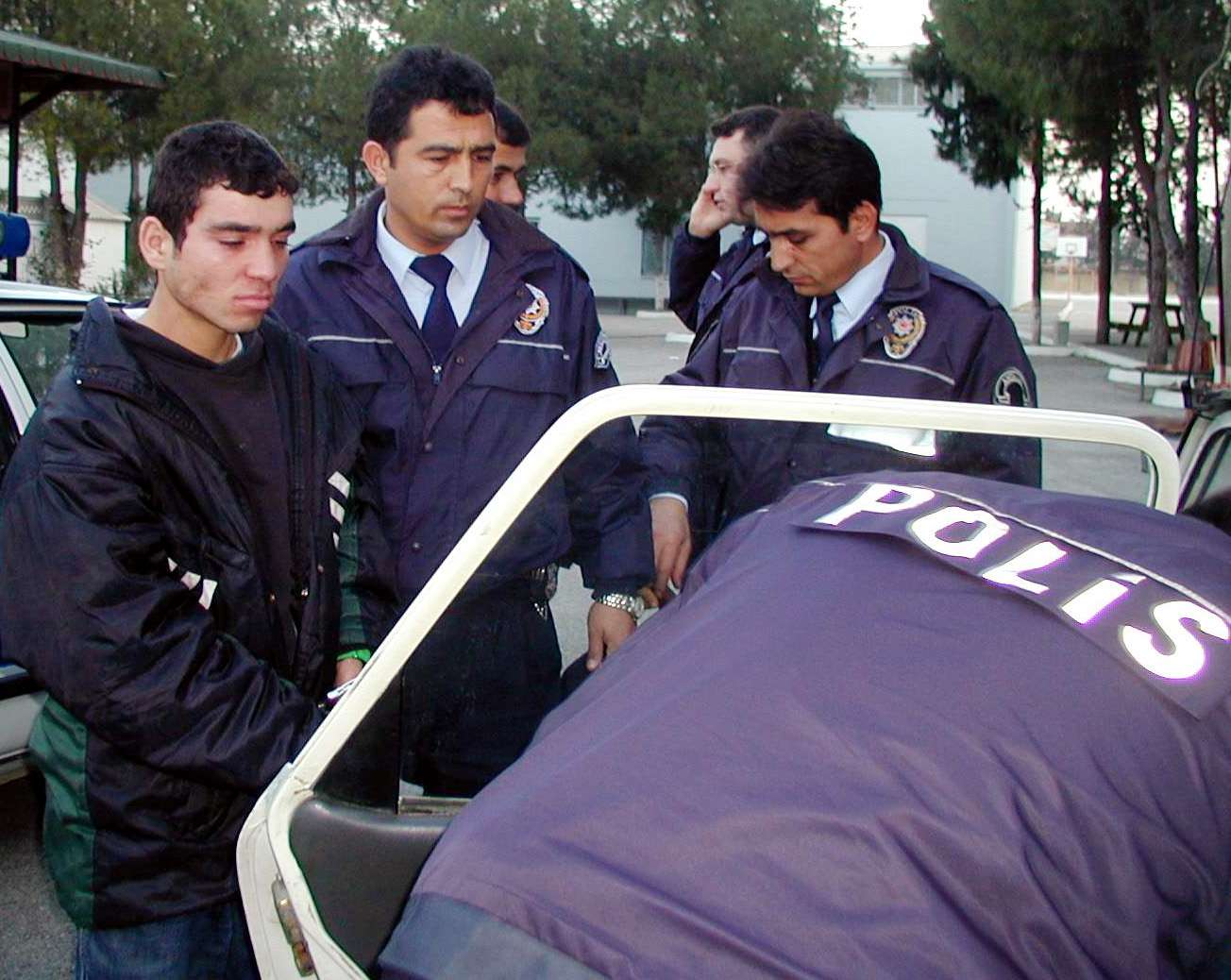 Eli satırlı tinerci genç, polis otosuna bindirilerek polis merkezine götürüldü.