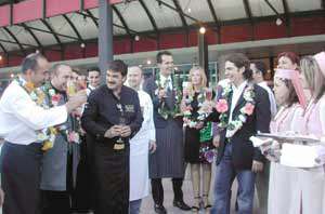 60 kişilik bir ekiple havalimanına gelen otel görevlileri, aşçıları kapıda çiçeklerle karşılayıp şampanya ikram ettiler. Kadeh kaldıran aşçılar, daha sonra yine kendileri için özel olarak serilen kırmızı halılar üzerinden yürüyüp limuzine bindi.