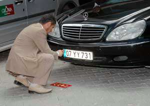 Bakan Koçun makam arabasının 0021 sayılı kırmızı plakası, mercedes marka 07 YY 731 plakalı araca takıldı.