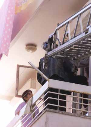 Antalya’da evinin balkonunda mahsur kalan kadın itfaiye tarafından kurtarıldı.