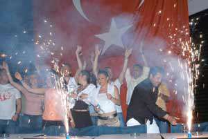 Antalyanın gözde mekanlarından Club Aura Moonlıghtta düzenlenen 19 Mayıs partisinde, 10. Yıl Marşına Türk turistlerin yanı sıra yabancı turistlerde eşlik etti.