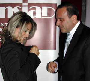 Sabancı yaklaşık bir saat süren konuşmasının ardından, yemeğe katılan ve ANSİAD’a üye olanlara rozetlerini taktı.