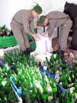Jandarma 330 tanesi dolu olmak üzere bin şişe şampanya ile bu şişelere ait çok sayıda kapak ve imalatta kullanılan çok sayıda malzemeye el koydu. M.A. jandarma tarafından gözaltına alınırken, R.A.nın arandığı bildirildi.