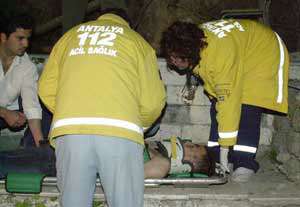 Karanlık bir mekanda yaralıya müdahale etmeye çalışan 112 görevlileri, olayı görüntülemek isteyen gazetecilerin kamera ışıklarından faydalanarak yaralıya müdahale ettiler. Yaklaşık 20 dakika süren itinalı bir çalışmanın ardından Tekligül, vatandaşlarında yardımıyla yüzüstü düştüğü yerden ters çevrilerek sedyeye yerleştirildi. Tekligül, ambulansa konularak Antalya Devlet Hastanesine götürüldü. Tekligül, durumunun ağır olması nedeniyle Tıp Fakültesine sevk edildi.
