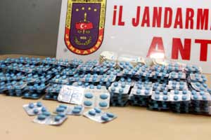 Antalya İl Jandarma Komutanlığı ekipleri, istihbarat çalışması sonucu piyasa değeri 8 bin YTL olan bin 540 adet sahte Viagra ele geçirirken, ilaçları satan 2 kişiyi de gözaltına aldı.