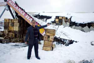 Korkuteli Toptancı Hali’nde kar nedeniyle dükkan önlerindeki sundurmalar kullanılamaz hale gelirken, sandık içerisindeki binlerce meyve de zarar gördü. Zararın karşılanmasını isteyen Korkuteli Toptancı Hal Müdürü Ömer Kolancı, "İlçeye yağan kar, sadece toptancı halinde 50 milyar lira zarara neden oldu" dedi.