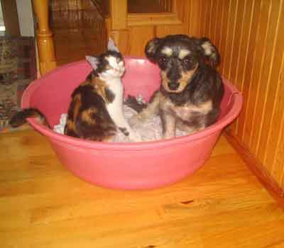 Emekli Başkomiser Fehmi Aslan ve eşi Çilem Aslan’ın köpekleri Cimcime ve kedileri Kınalı, 5 aydır aynı kaptan yemek yiyip, aynı yerde yatıyor. Cimcime ve Kınalı’nın dostlukları, görenleri hayrete düşürüyor. Evlerinde daha önce de hayvan beslediklerini söyleyen Fehmi Aslan, Kınalı’nın dördüncü kedileri olduğunu belirterek, "Cimcime, Kınalı eve geldiği zaman ona annelik yaparak onu 5 ay boyunca emzirdi. Kınalı hala acıktığı zaman gelip Cimcime’yi emiyor. Bu iki hayvan asla birbirlerinden ayrılamıyor. Evimiz iki katlı olduğu için birisi alt kata inince öbürü de hemen yanına iniyor. Aralarında mükemmel bir dostluk var. Birlikte oyunlar oynuyorlar. Bizim üç tane çocuğumuz var, ama bu iki hayvan evimize geldikten sonra çocuklarımızın sayısı beş oldu diyoruz. Dostlukların ve komşuluk ilişkilerinin yok olduğu günümüzde, bize Kınalı ve Cimcime can dostu oldular. Bize yaşama sevinci verdiler" dedi.