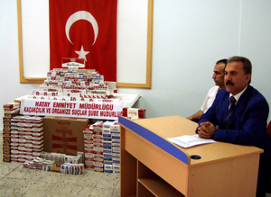 Hatay Emniyet Müdür Yardımcısı Ragıp Kılıç, sahte tekel ürünlerine yönelik ihbarların artması üzerine, Hatay genelinde başlattıkları operasyonlarda toplam 172 iş yerini denetlediklerini ve yapılan aramalarda piyasa değeri 50 milyar lira olan, 8 bin 732 paket sigara, 389 şişe viski, 276 kilogram çay ve 95 kilo toz şeker ele geçirdiklerini söyledi.