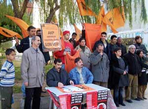 Halkevleri İskenderun Şubesi, Irak’taki Türk şirketlerinin faaliyetlerini durdurması için eylem yaptı. İskenderun Boyacılar Parkı’nda toplanan yaklaşık 20 kişilik grup, sloganlar atarak, Türk şirketlerinin Irak’taki Amerikan birliklerine taşımacılık yapmalarını protesto etti.